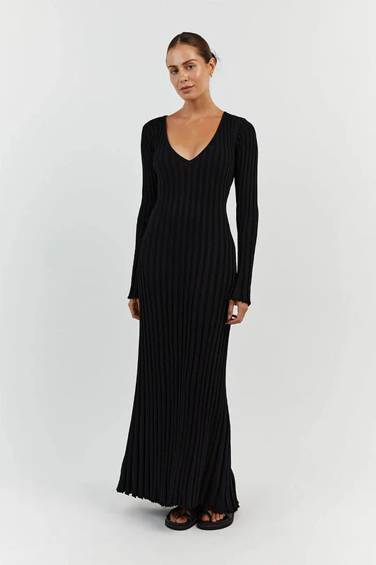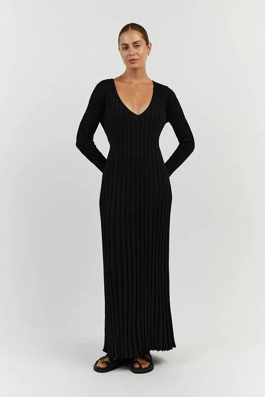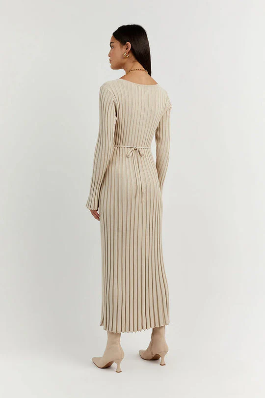 Abito midi Yasmin in Maglia con Scollo a V e Maniche