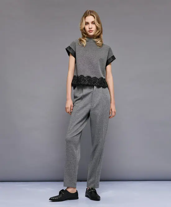 Pantaloni con cintura in similpelle e cuciture decorative. Dotati di tasche laterali, tasche a filetto decorative sul retro e passanti per cintura. Abbinali alla blusa coordinata della nostra collezione per un look elegante da giorno.