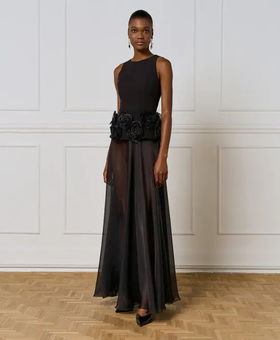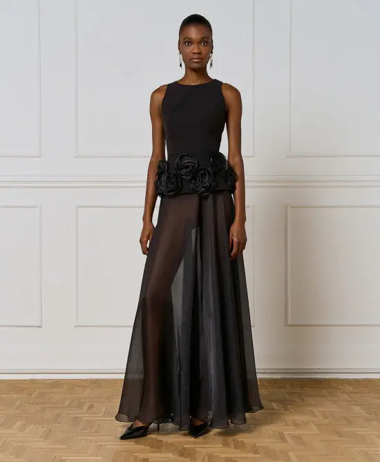 Top con dettagli floreali in organza. Presenta scollo rotondo e cuciture decorative, chiusura con cerniera posteriore. Sceglilo per look glamour e di grande impatto abbinandolo a pantaloni neri.