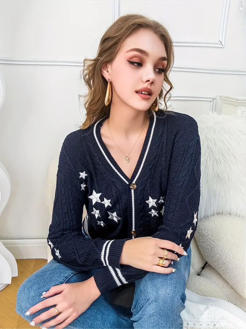 Ada – Cardigan con bottoni sul davanti e motivo a stelle