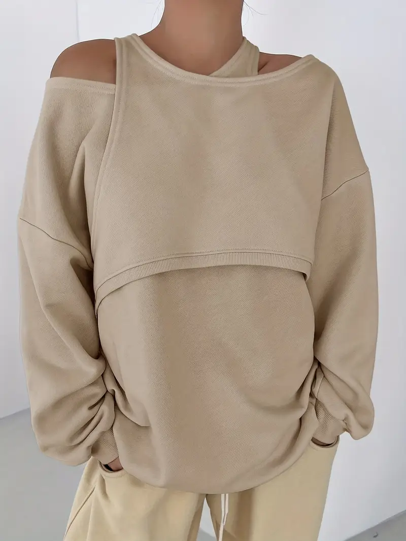 Aggiungi un tocco di eleganza audace al tuo guardaroba casual con la felpa con scollo asimmetrico e spalle scoperte da donna. Questo capo alla moda presenta un’elegante scollatura asimmetrica che cade con grazia su una spalla, creando una silhouette moderna e asimmetrica. Realizzata in un morbido e accogliente misto cotone, offre il perfetto mix di comfort e moda. La vestibilitร ampia e i polsini a coste creano un fascino rilassato ma chic, mentre il design con spalle scoperte aggiunge un tocco di seduzione, rendendola ideale per uscite informali o weekend rilassati.