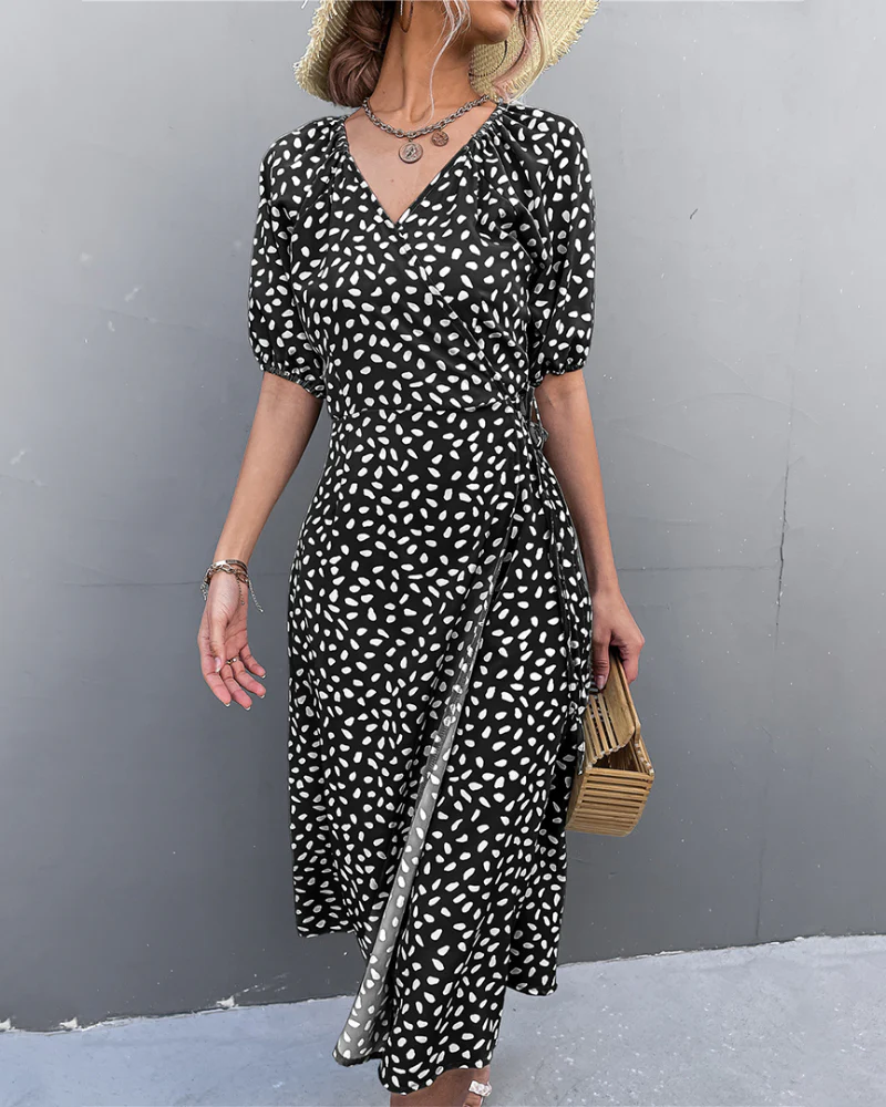 Aicelle – Elegante abito midi leopardato con scollo a V