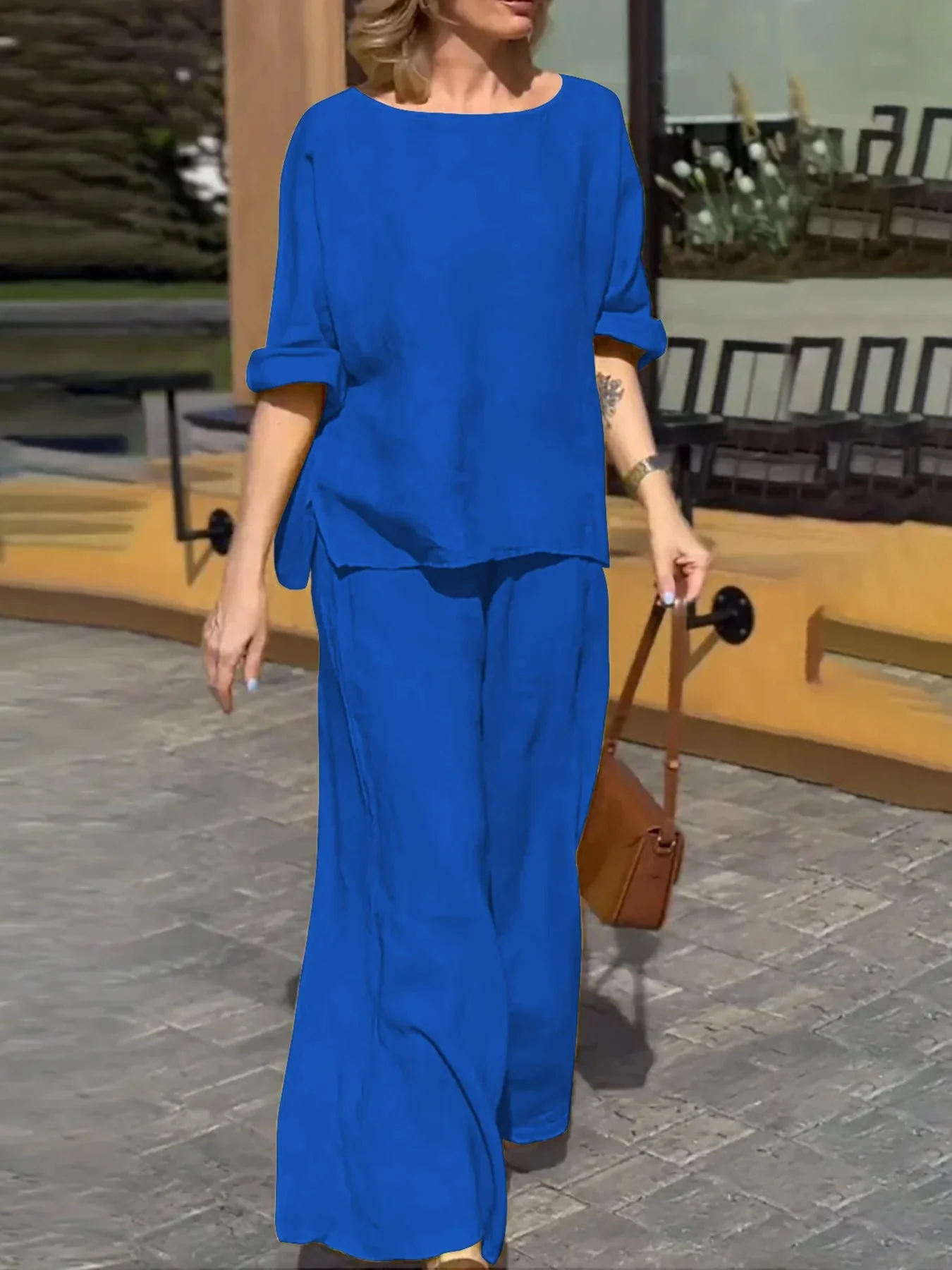 Alaya – Completo casual con blusa ampia e pantaloni a gamba larga