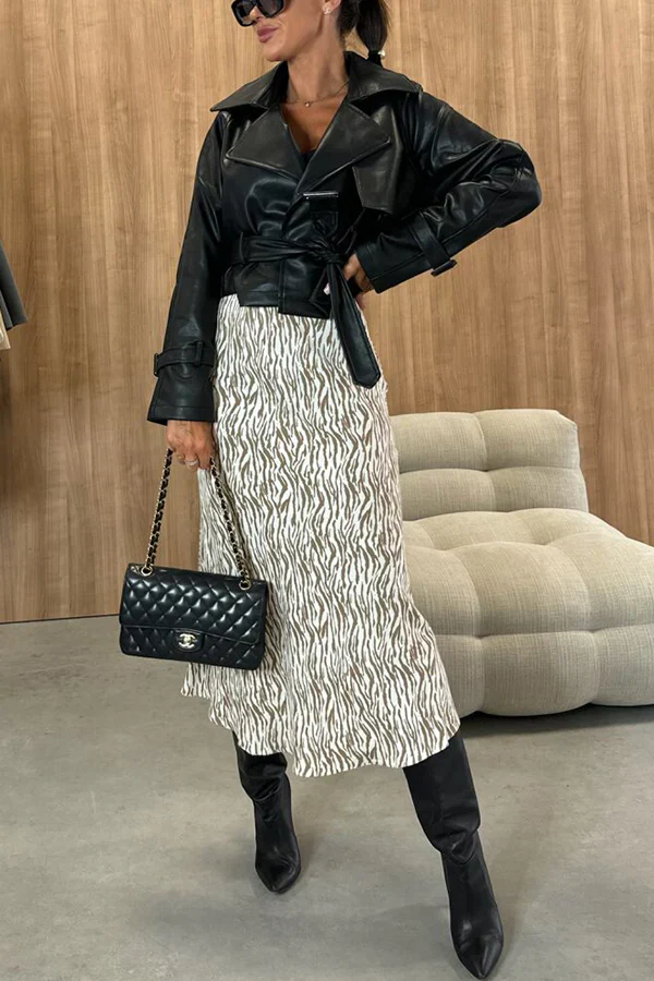 Barbara – Gonna snellente a vita alta con stampa animalier
