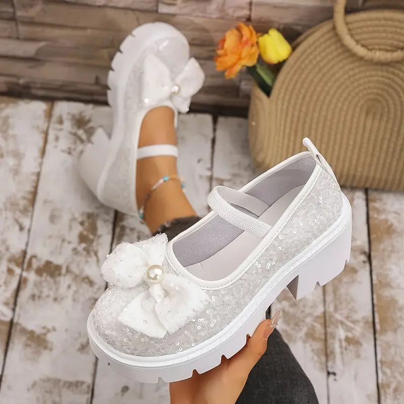 Arlene – Mocassini da donna con paillettes e tacco grosso