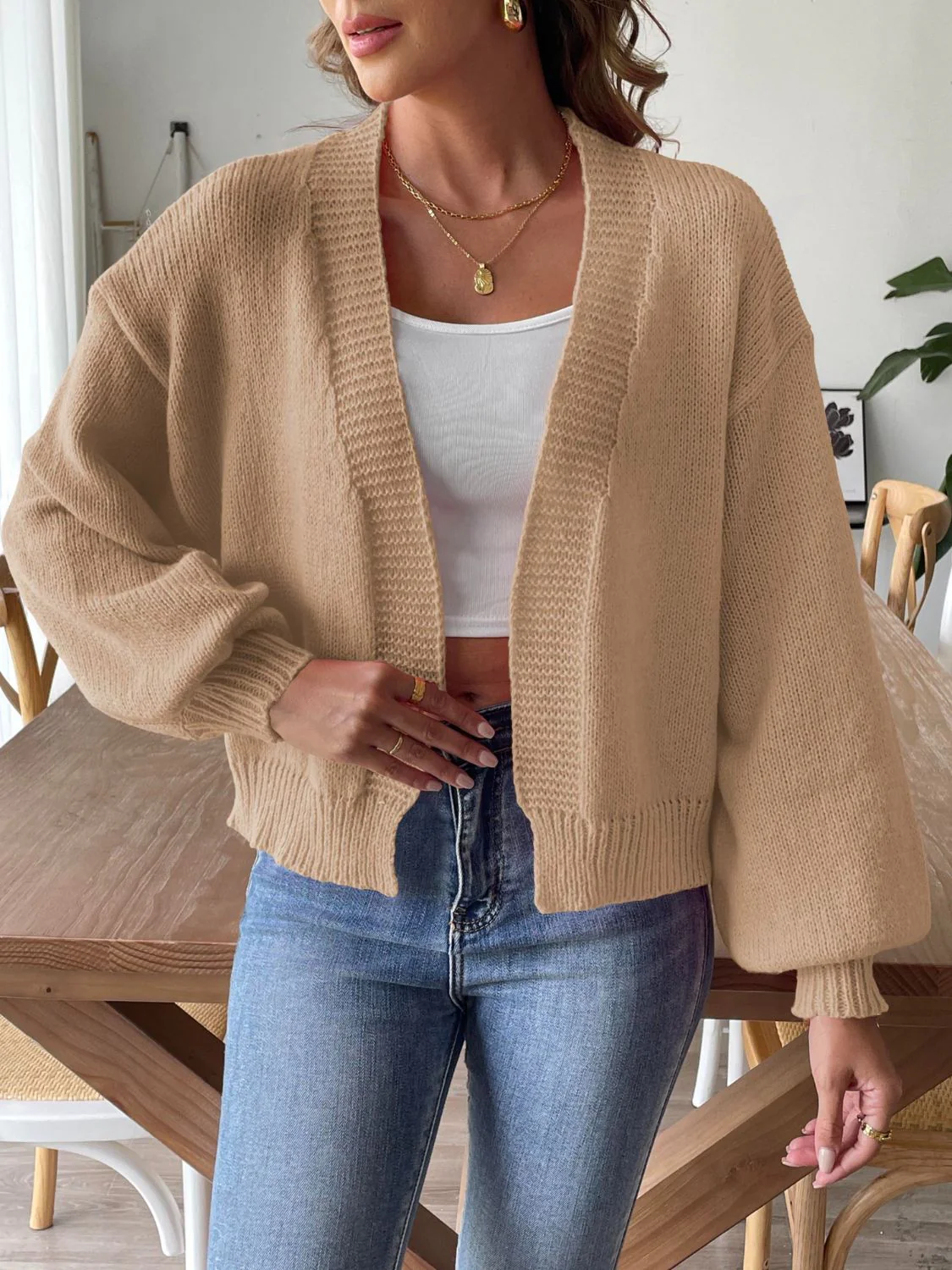 Cerchi uno strato da sovrapporre che sia comodo e stiloso? Questo cardigan morbido con maniche lunghe e design aperto รจ la risposta. Con il suo taglio rilassato, aggiunge un tocco moderno a ogni look, perfetto sia per la casa che per uscire.