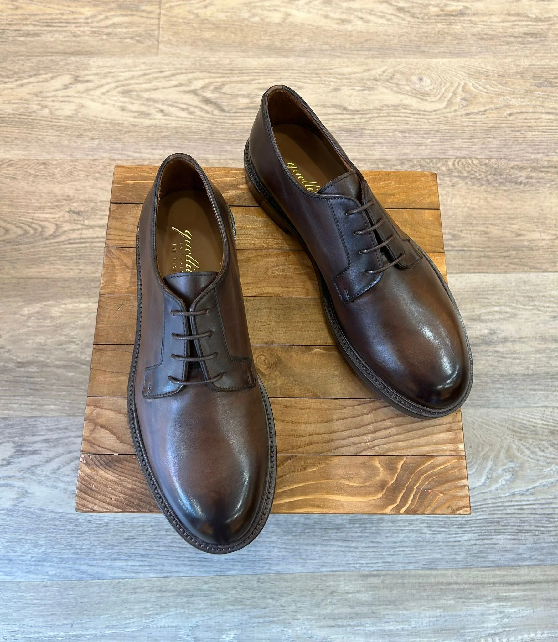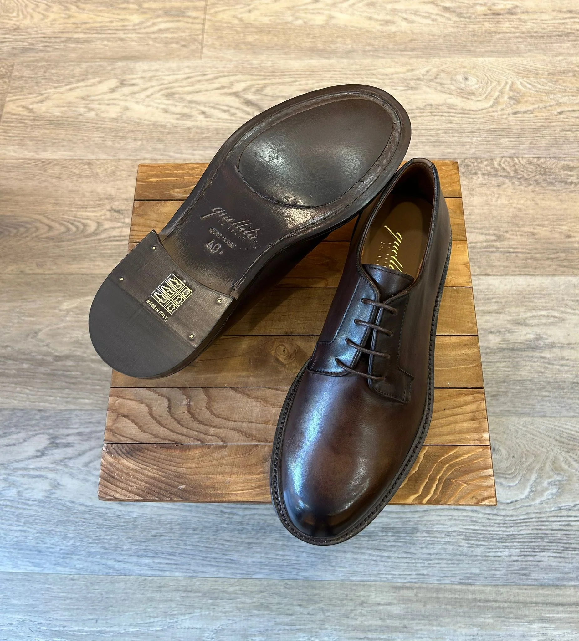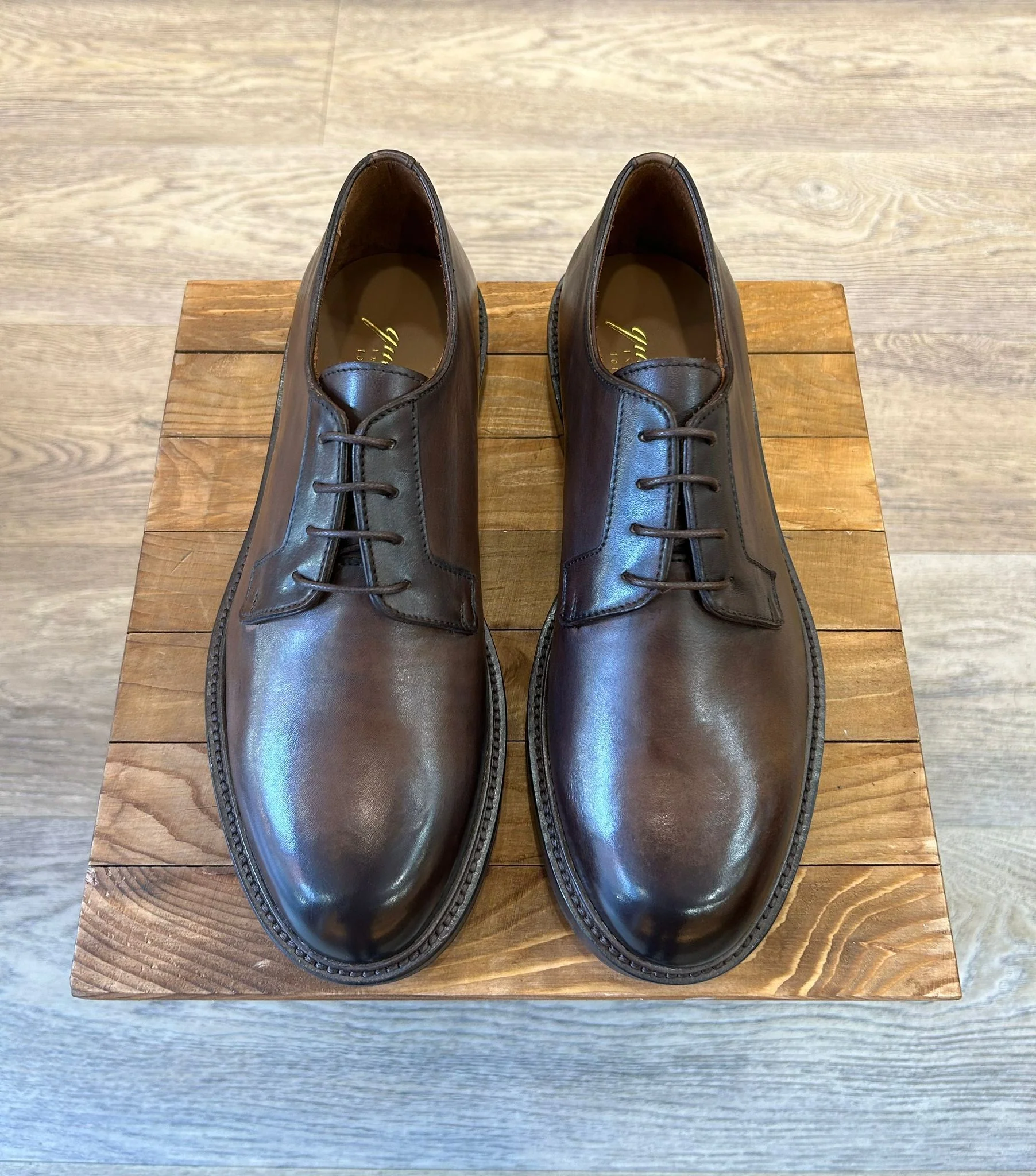 Scopri l’eleganza senza tempo delle nostre calzature Derby testa di moro in pelle, un vero must-have per l’uomo moderno.