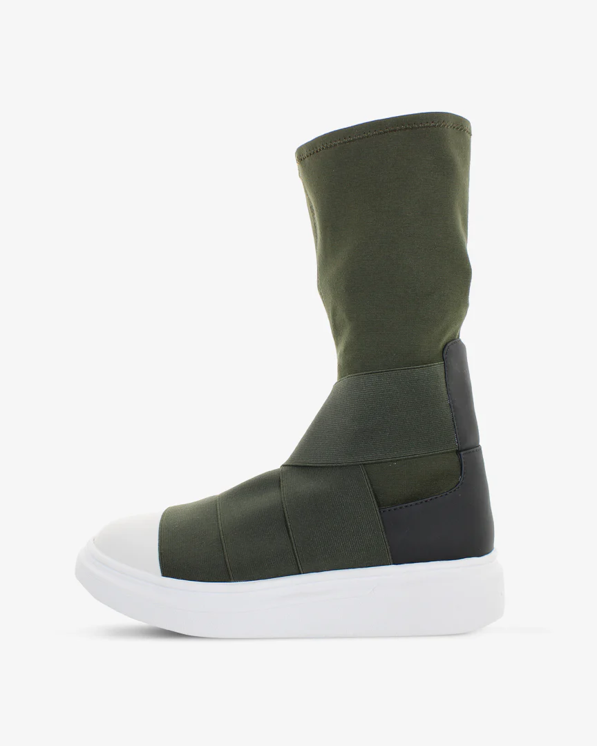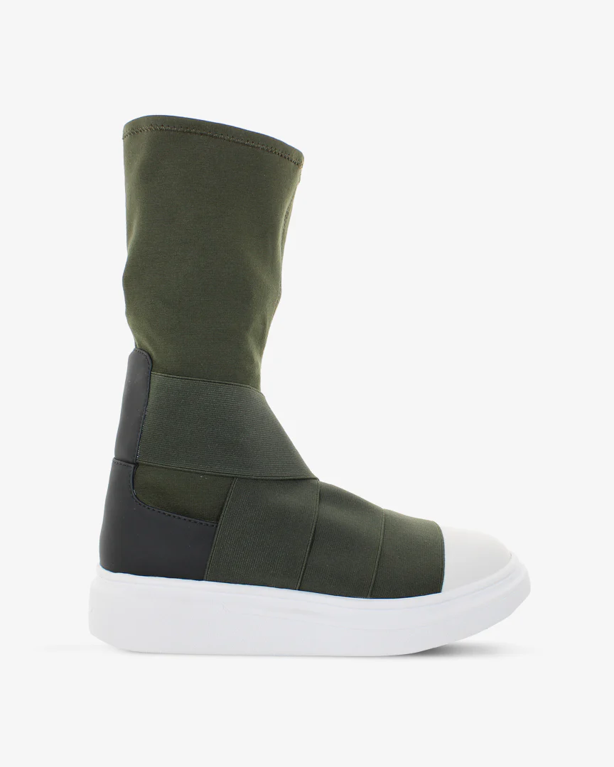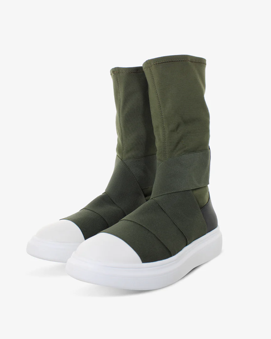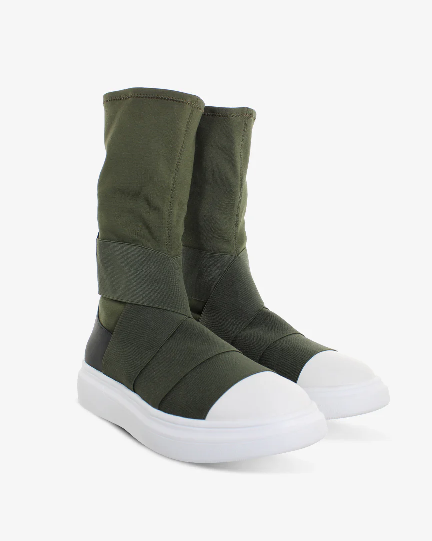 Il sock boot sportivo EDGEยฎ Midmask, verde con fondo bianco, si presenta con una tomaia realizzata in microfibra con calzino alto sopra al polpaccio, fasce elastiche brevettate, puntale in poliuretano opaco a contrasto, soletta interna antibatterica ed estraibile, rinforzo in gomma sul tallone e fondo in Eva. ร un sock boot comodo e leggero, adatto per il tempo libero e ideale per la stagione invernale.