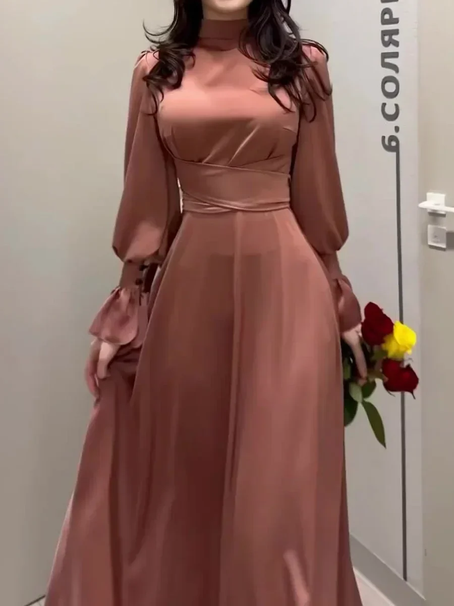 Estela – Abito lungo elegante e semplice con maniche a vescovo