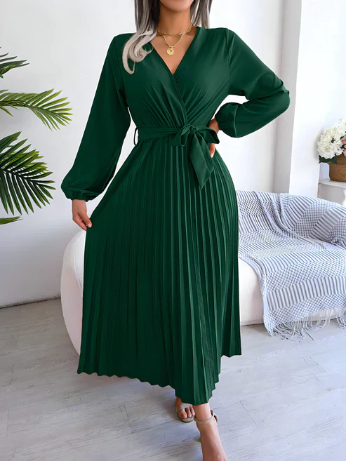 Abito a turni con scollo a pallina e vita annodata sul retro