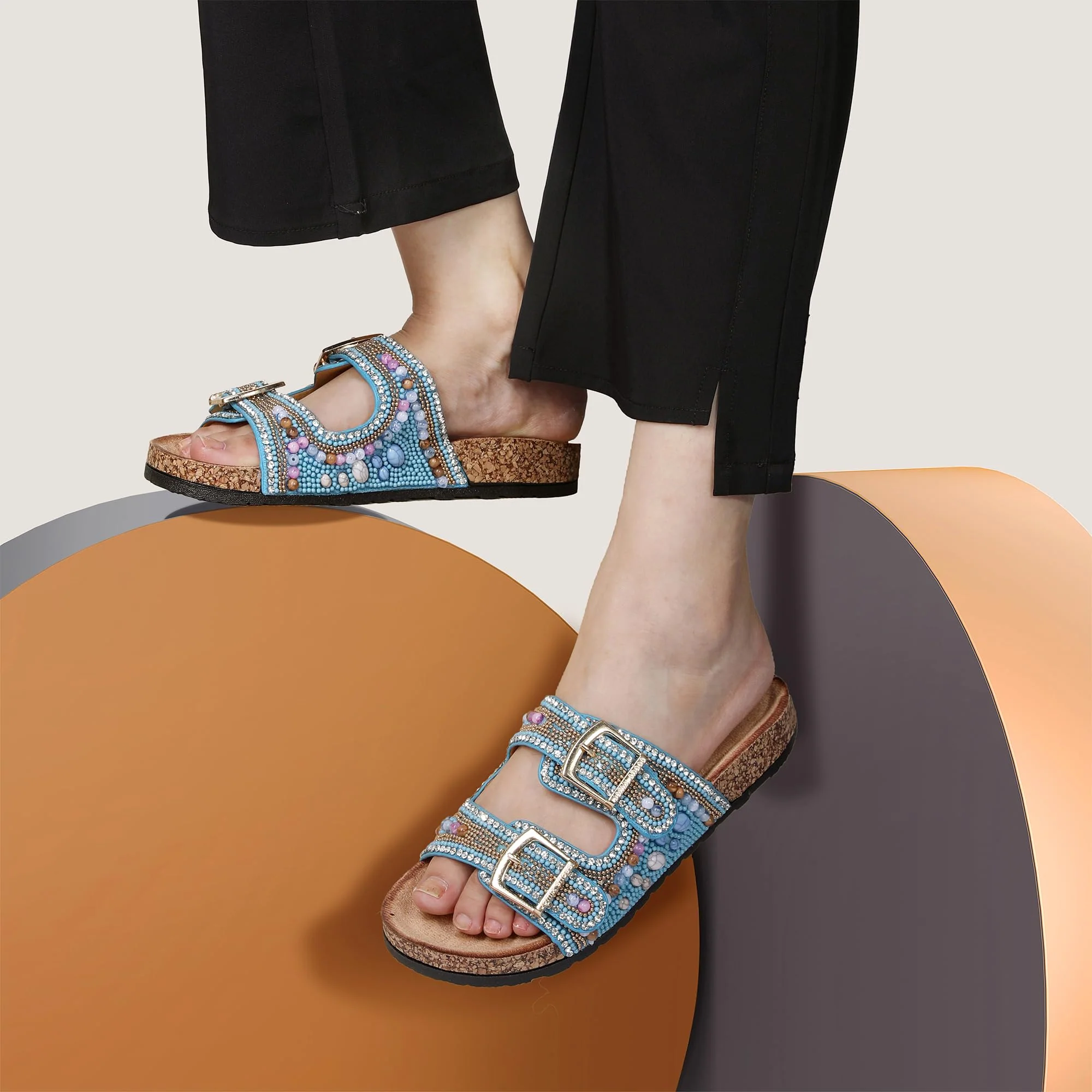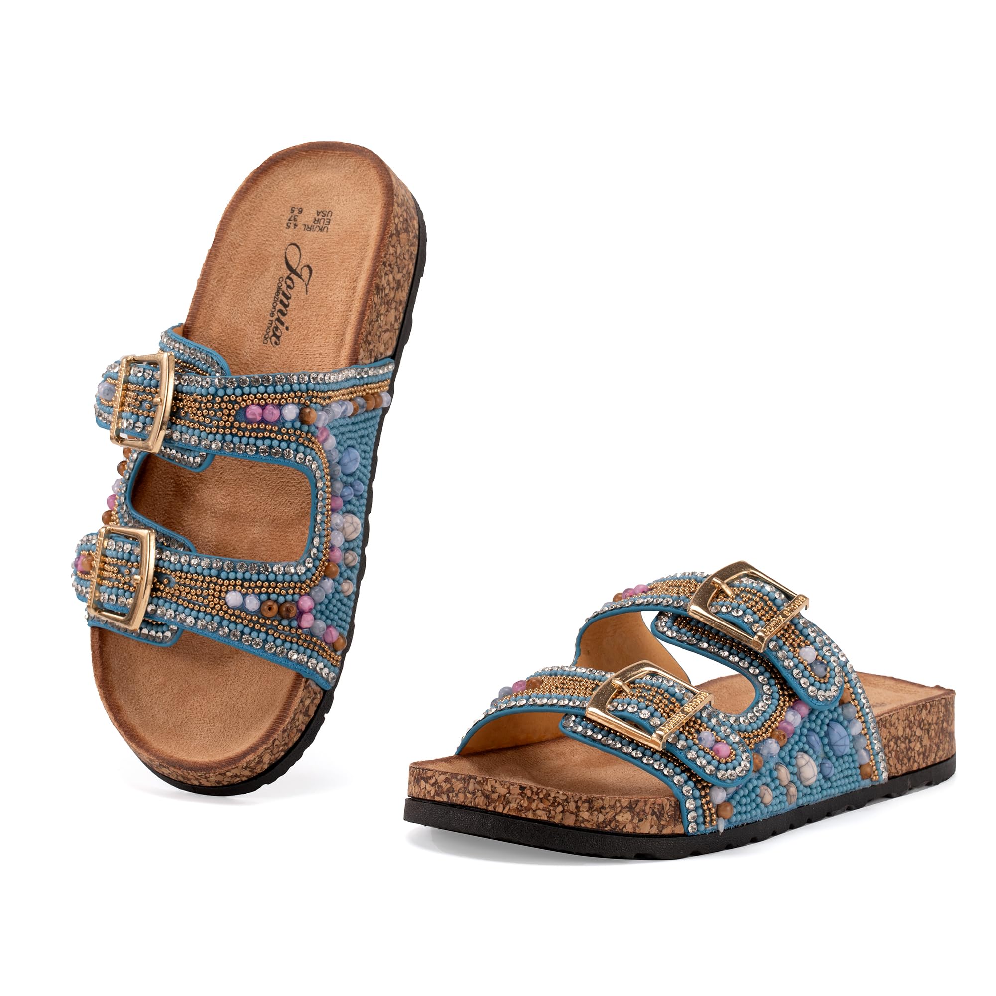 Le nostre ciabatte sono la perfetta combinazione di moda e comfort per i piedi. Il design della tomaia con strass รจ elegante e generoso, mentre le suole sono realizzate in sughero di alta qualitร , che non solo aumenta il comfort dei piedi, ma assorbe efficacemente l’umiditร e traspira, mantenendo i piedi asciutti e comodi anche nella calda estate. Il materiale resistente all’usura e antiscivolo non solo รจ leggero e durevole, ma offre anche un’ottima presa sulle superfici scivolose per garantire una camminata sicura. Abbinati a un abito o a un pantalone casual, sono un capo di moda estivo indispensabile!