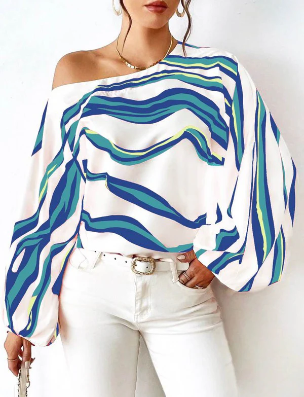 Lisette – Elegante blusa a maniche lunghe con righe morbide e spalle scoperte