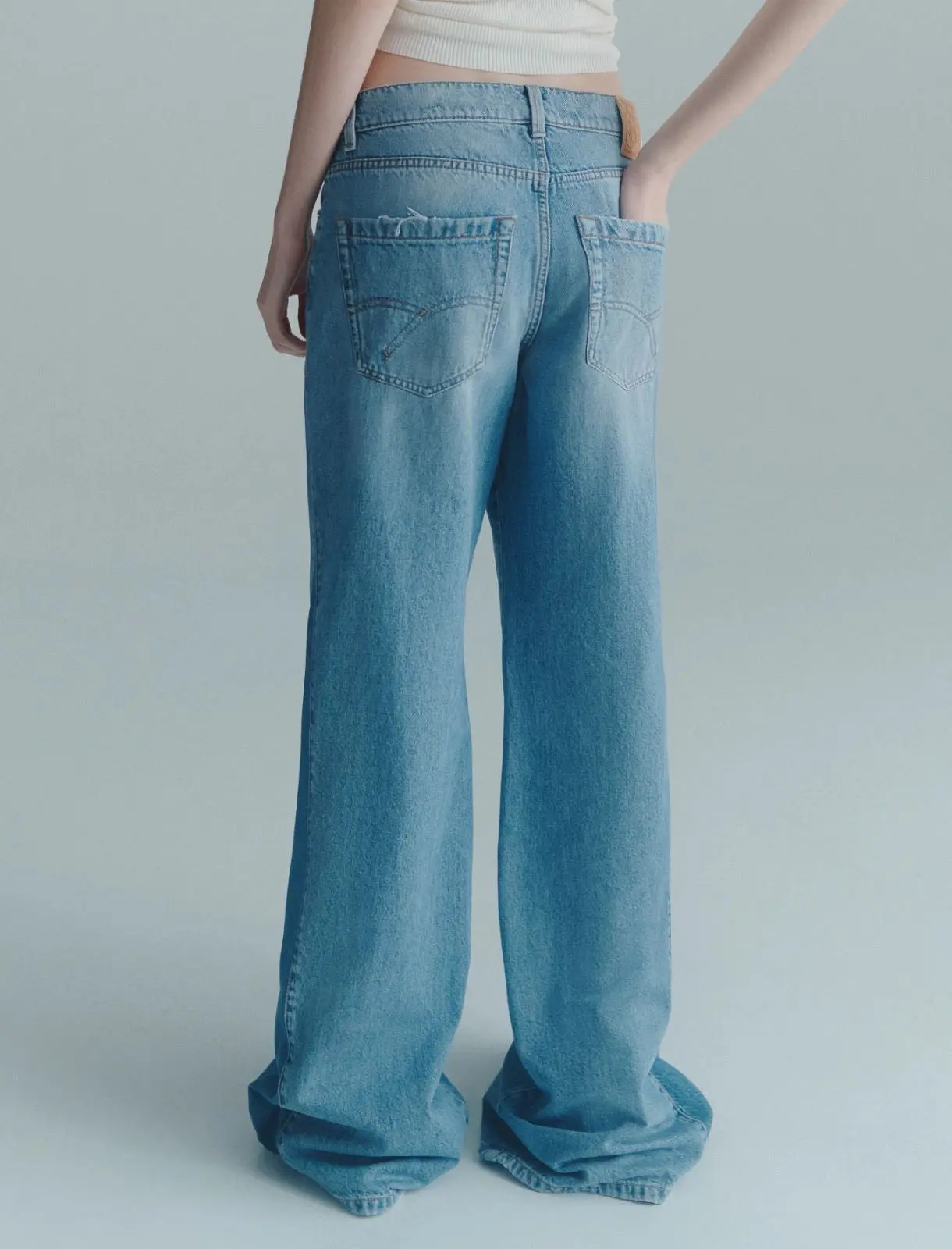 Mood urbano, con una nota raffinata: nuovo denim wide leg con vita bassa, dalla classica costruzione a cinque tasche. Immancabile nel guardaroba metropolitano, perfetto in ogni occasione. Jeans in denim di puro cotone realizzato in collaborazione con Candiani Denim. Fit wide leg con vita bassa. Chiusura con bottone a chiodo personalizzato. Costruzione a 5 tasche. Etichetta posteriore in vera pelle con logo e impuntura sulle tasche posteriori