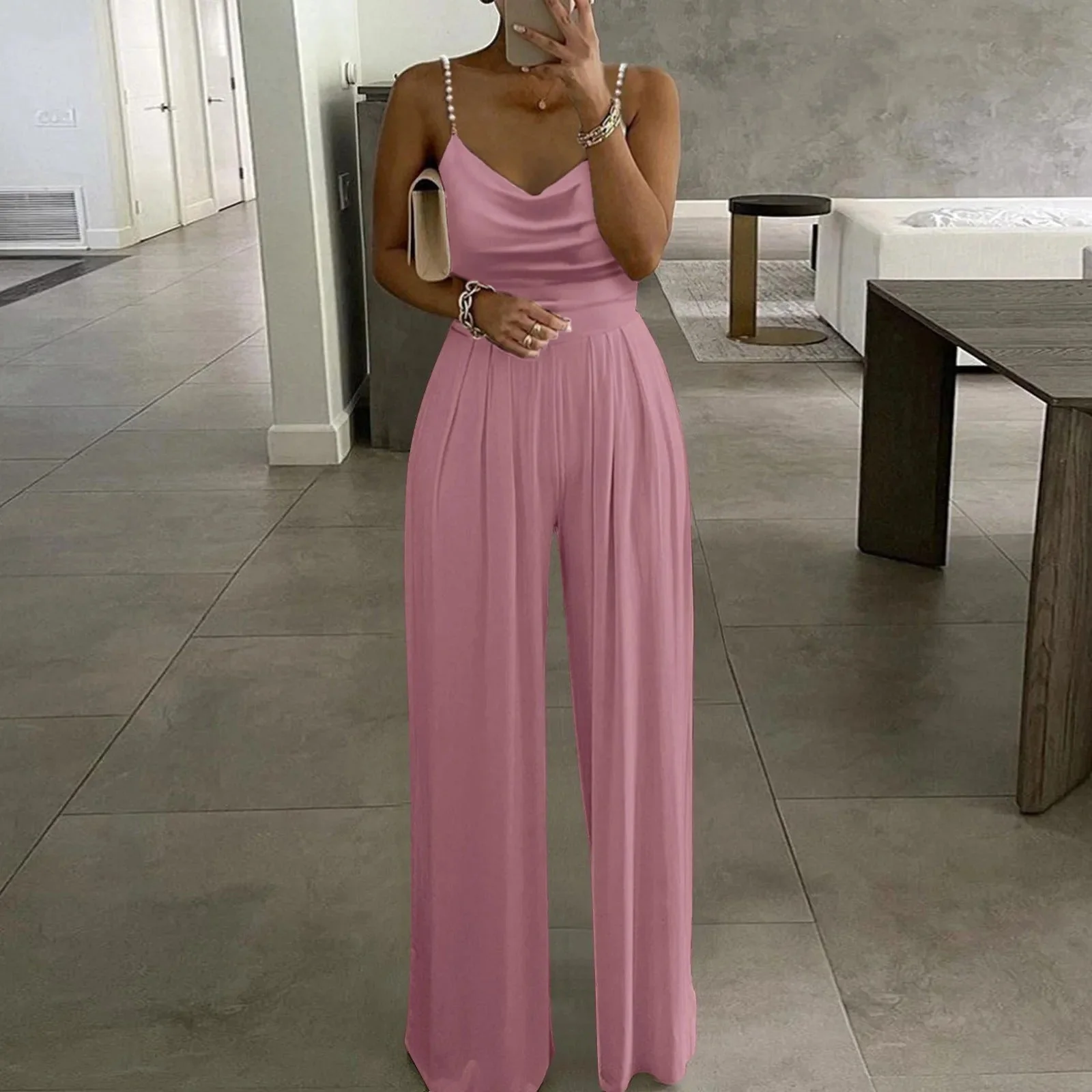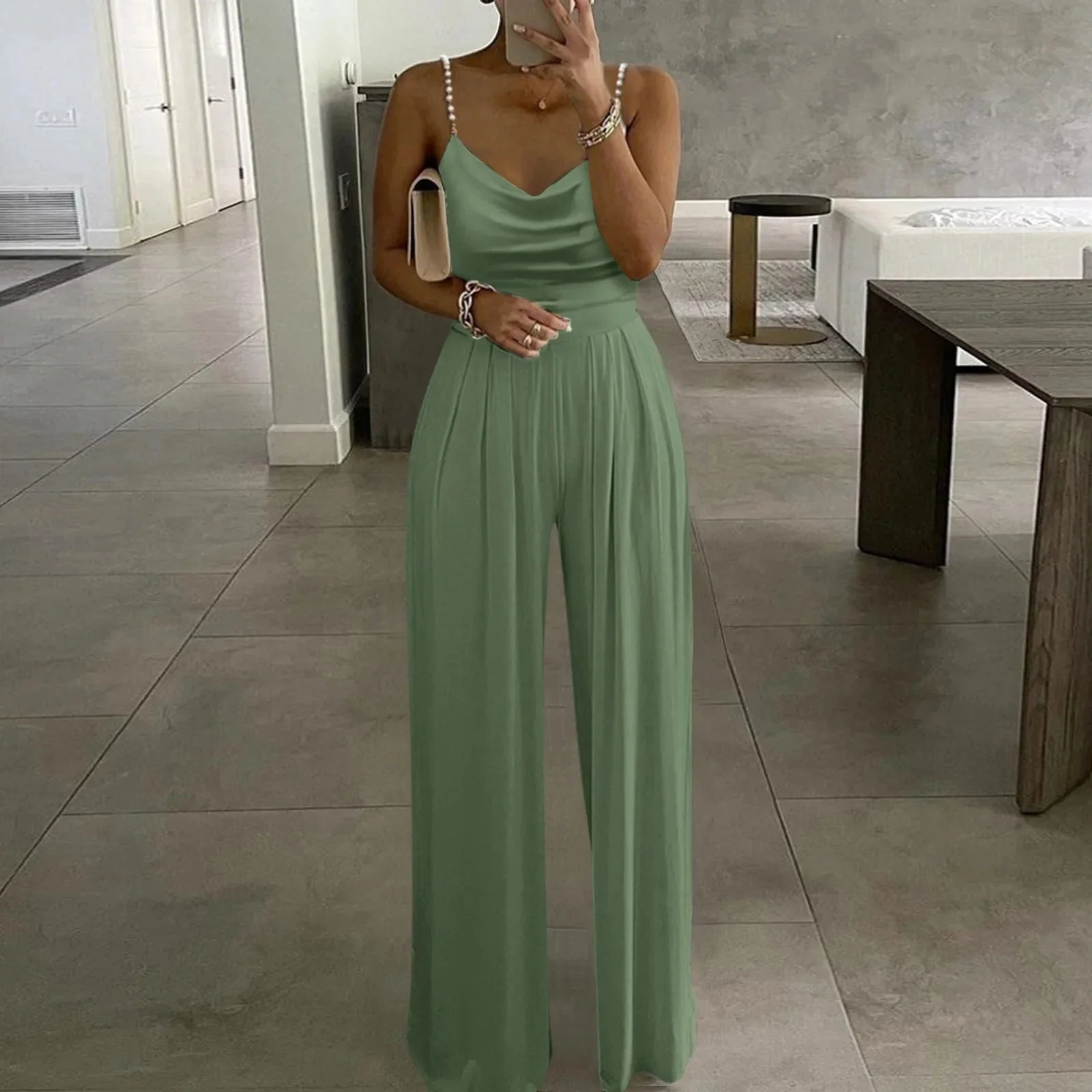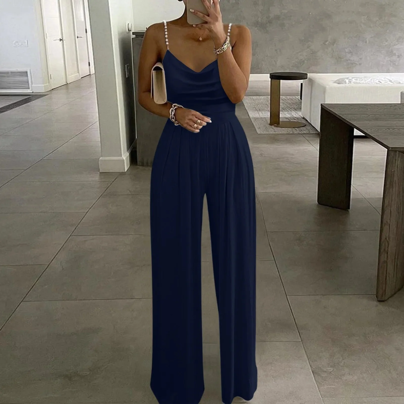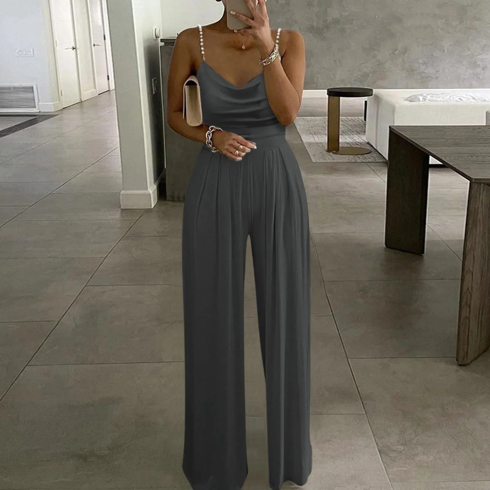 Questa tuta con spalline sottili รจ la combinazione perfetta di stile disinvolto e comfort. Con spalline sottili e una vestibilitร lusinghiera, offre un look elegante e moderno che puรฒ essere indossato sia di giorno che di notte. Il tessuto leggero assicura traspirabilitร e comfort, mentre la silhouette sottile accentua la tua figura senza essere costrittiva.