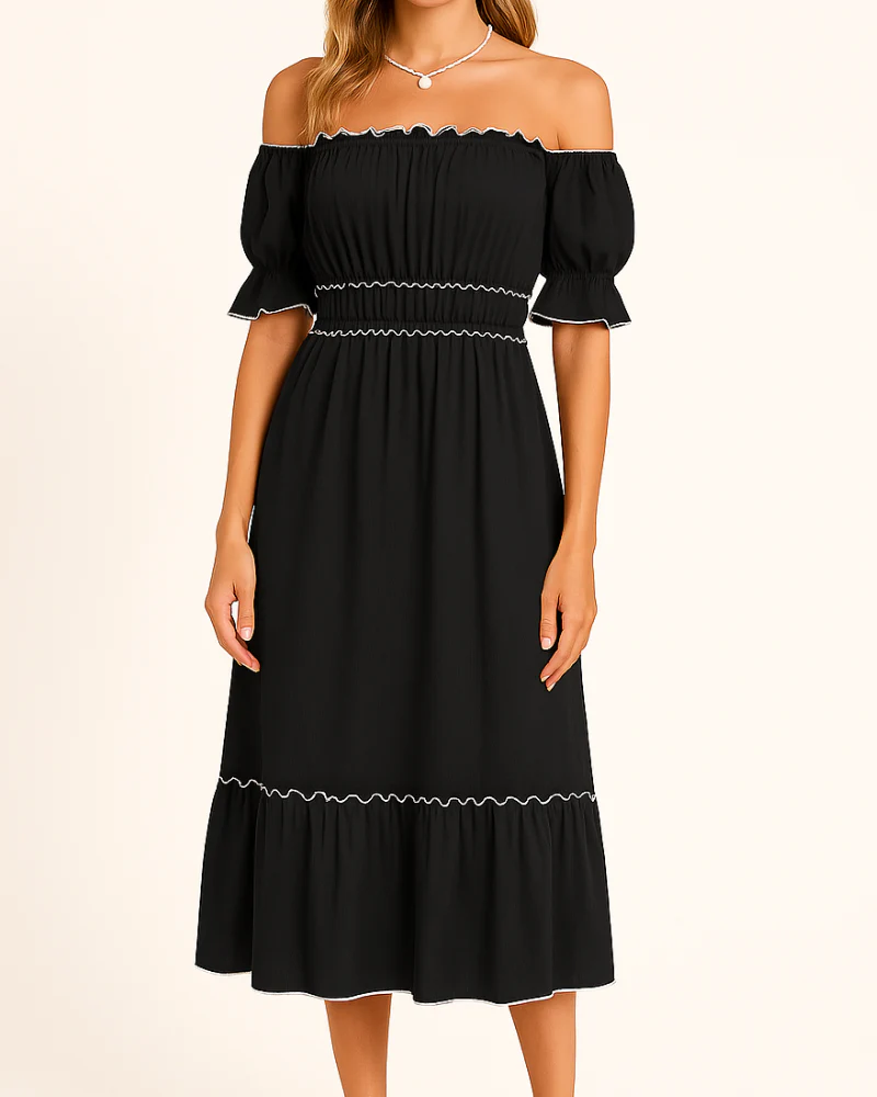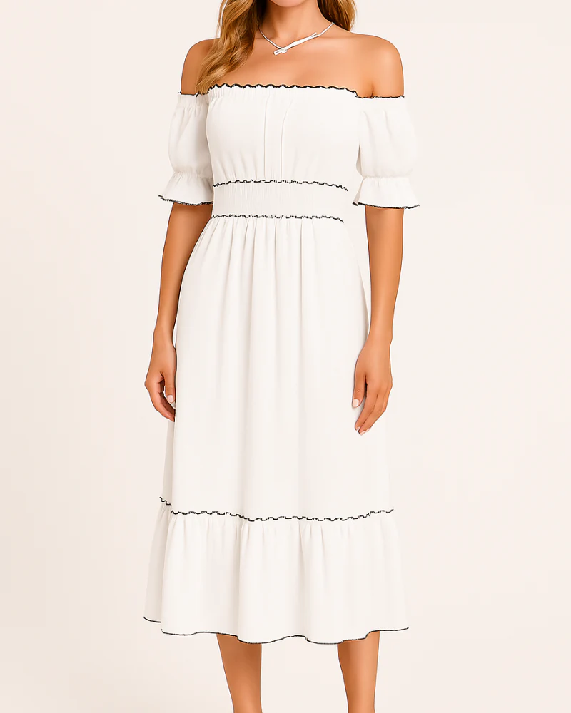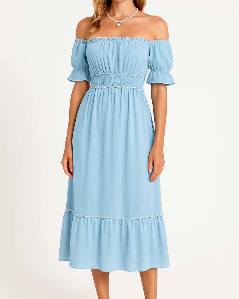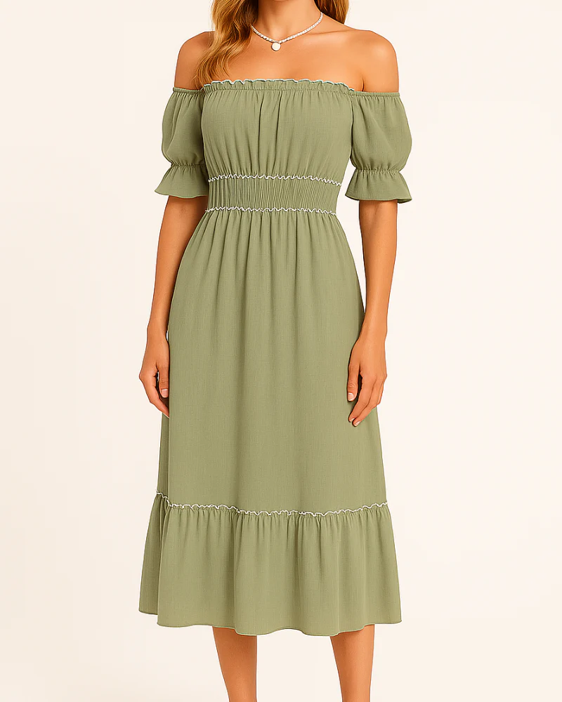 Nina – Elegante abito midi con spalle scoperte