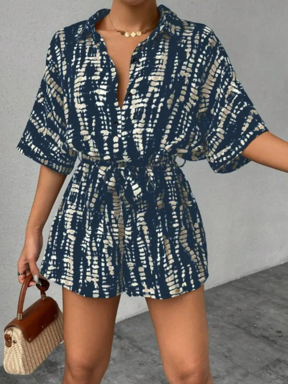 Cerchi un outfit elegante ma semplice per ogni occasione? Questa tuta con cintura e maniche a metร braccio รจ tutto ciรฒ che ti serve. Con un taglio che valorizza e una vestibilitร comoda, fonde perfettamente eleganza moderna e stile rilassato. Perfetta per un brunch, un’uscita casual o una passeggiata al tramonto.