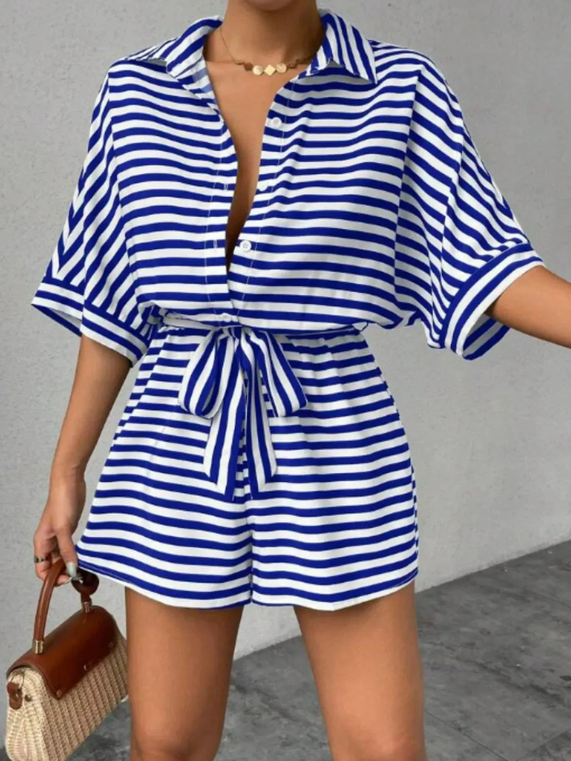 Patricia – Elegante tuta a mezza manica con cintura da donna