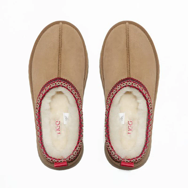 Step up your style and comfort with the Premium Tassie Platform UGG Slippers, a modern twist on the classic UGG design. Crafted from 100% Australian double-face sheepskin, these slippers deliver the ultimate combination of warmth, breathability, and timeless elegance. The natural fleece lining keeps your feet cosy in cooler months while allowing airflow for all-day comfort. Featuring a braided cross-stitch trim around the ankle, this design adds a touch of handcrafted charm that sets it apart from traditional silhouettes.
