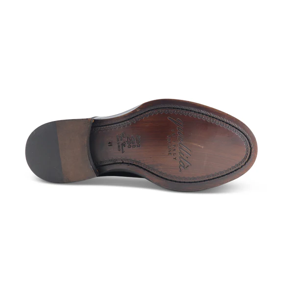 - Suola in cuoio cucita: La suola robusta, cucita e non incollata, offre resistenza e stabilitร in ogni passo, rendendo queste scarpe ideali per ogni occasione.