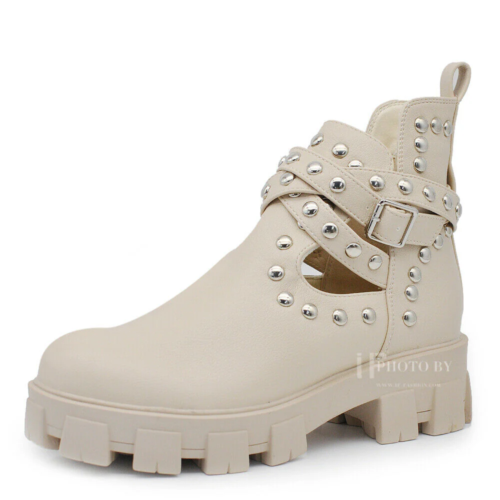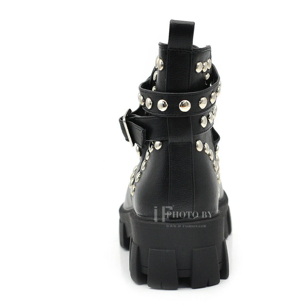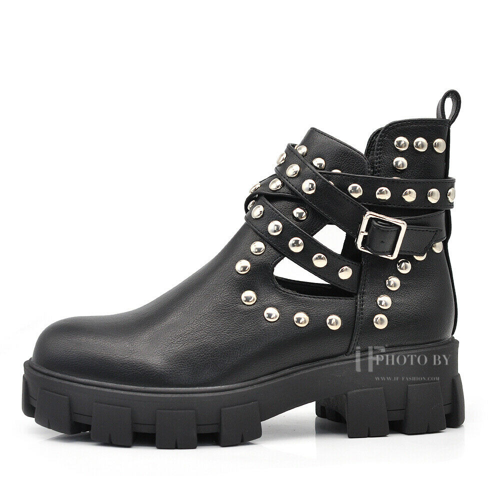 Descrizione* Scarpe da donna stivaletti primaverili con borchie e fibbie