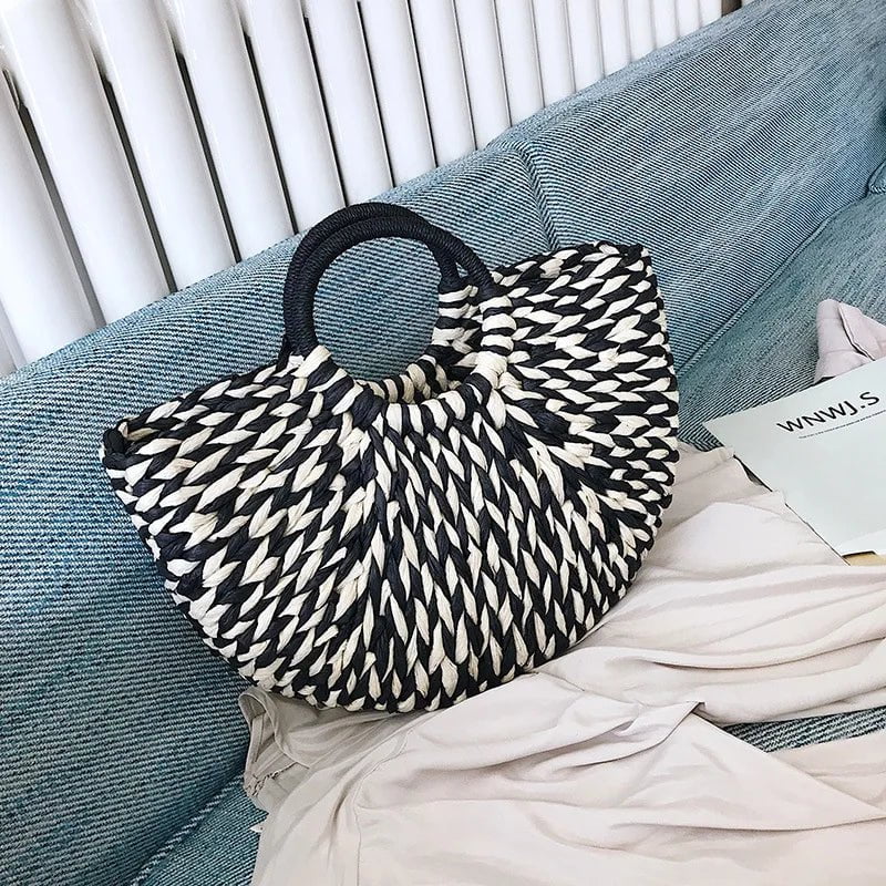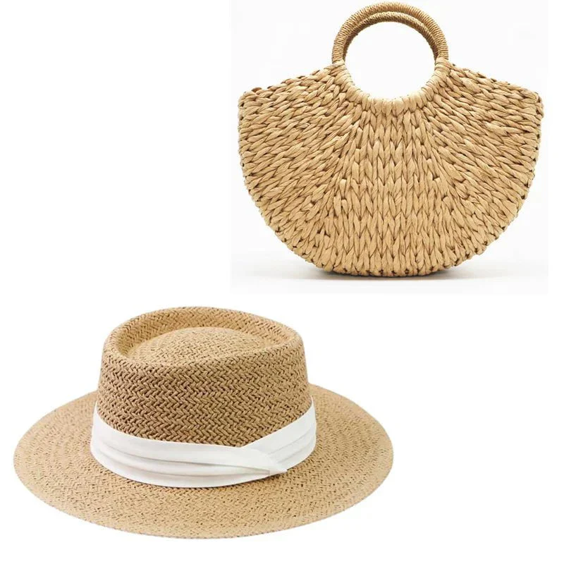 Set Estivo Donna: Cappello e Borsa in Paglia Intrecciati a Mano