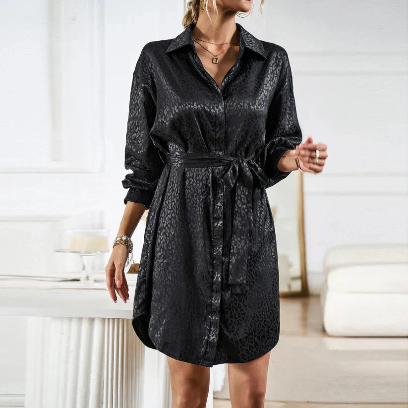 Wendelynn – Elegante mini abito a maniche lunghe stile leopardato con cintura