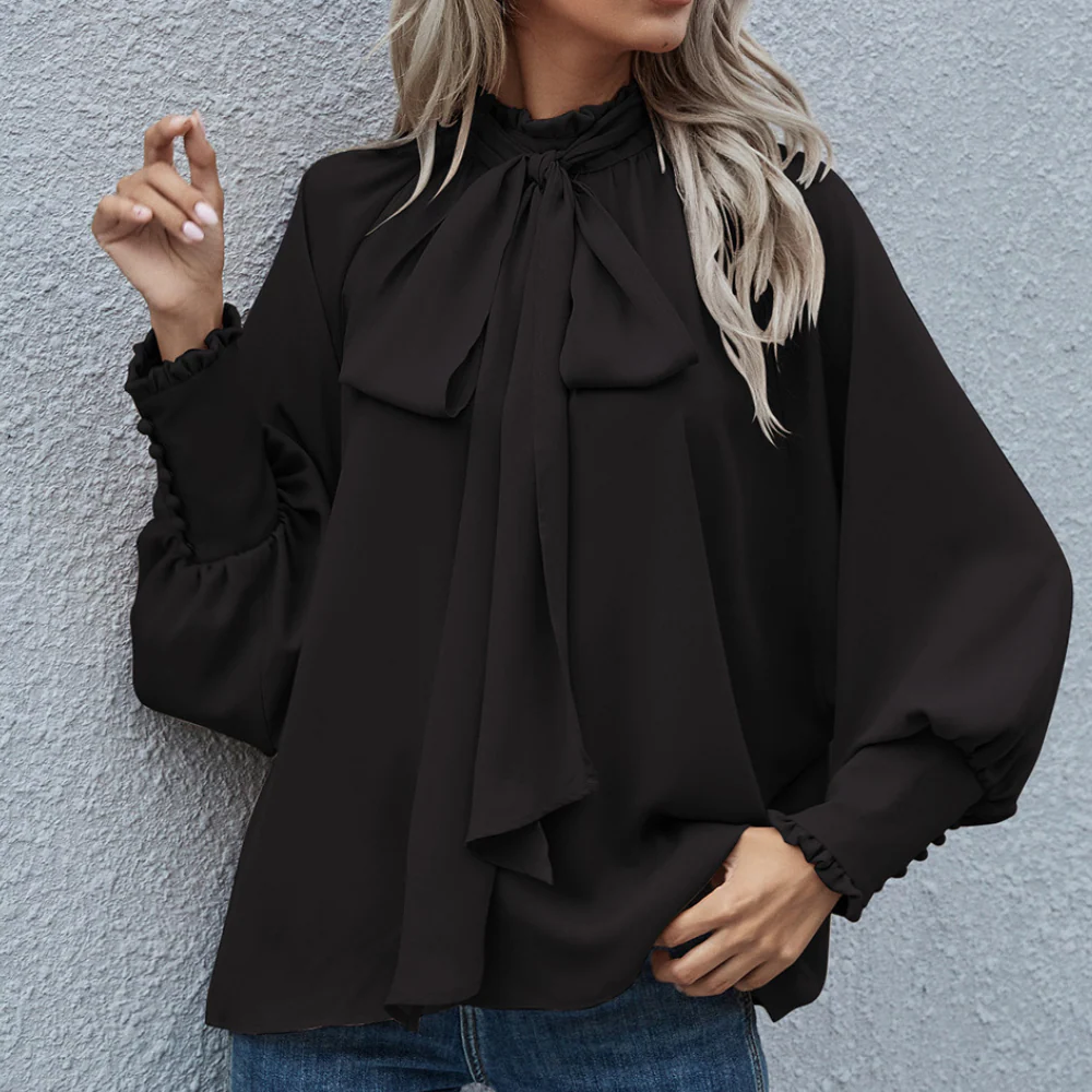 Realizzata in tessuto leggero e di alta qualitร , questa blusa garantisce comfort per tutto il giorno grazie alla sua texture morbida e traspirante. Il design con fiocco al collo offre diverse possibilitร di stile: annodalo per un look sofisticato o lascialo sciolto per un tocco piรน rilassato. Con la sua vestibilitร fluida e maniche eleganti, questa blusa incarna grazia e raffinatezza, perfetta per la donna moderna.