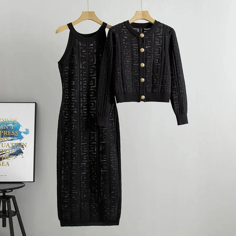 Zianna – Elegante Completo con Abito e Cardigan in Maglia Geometrica
